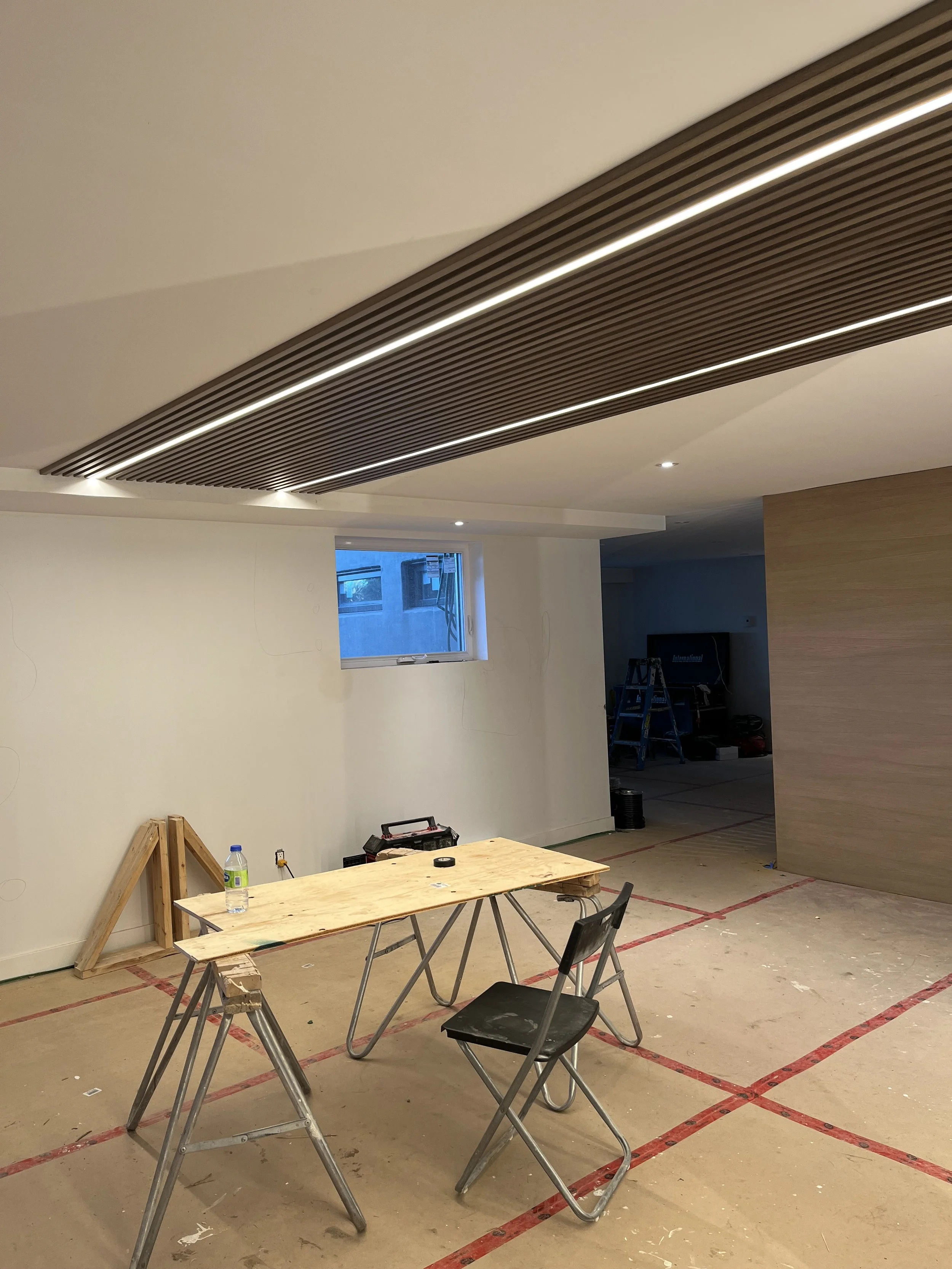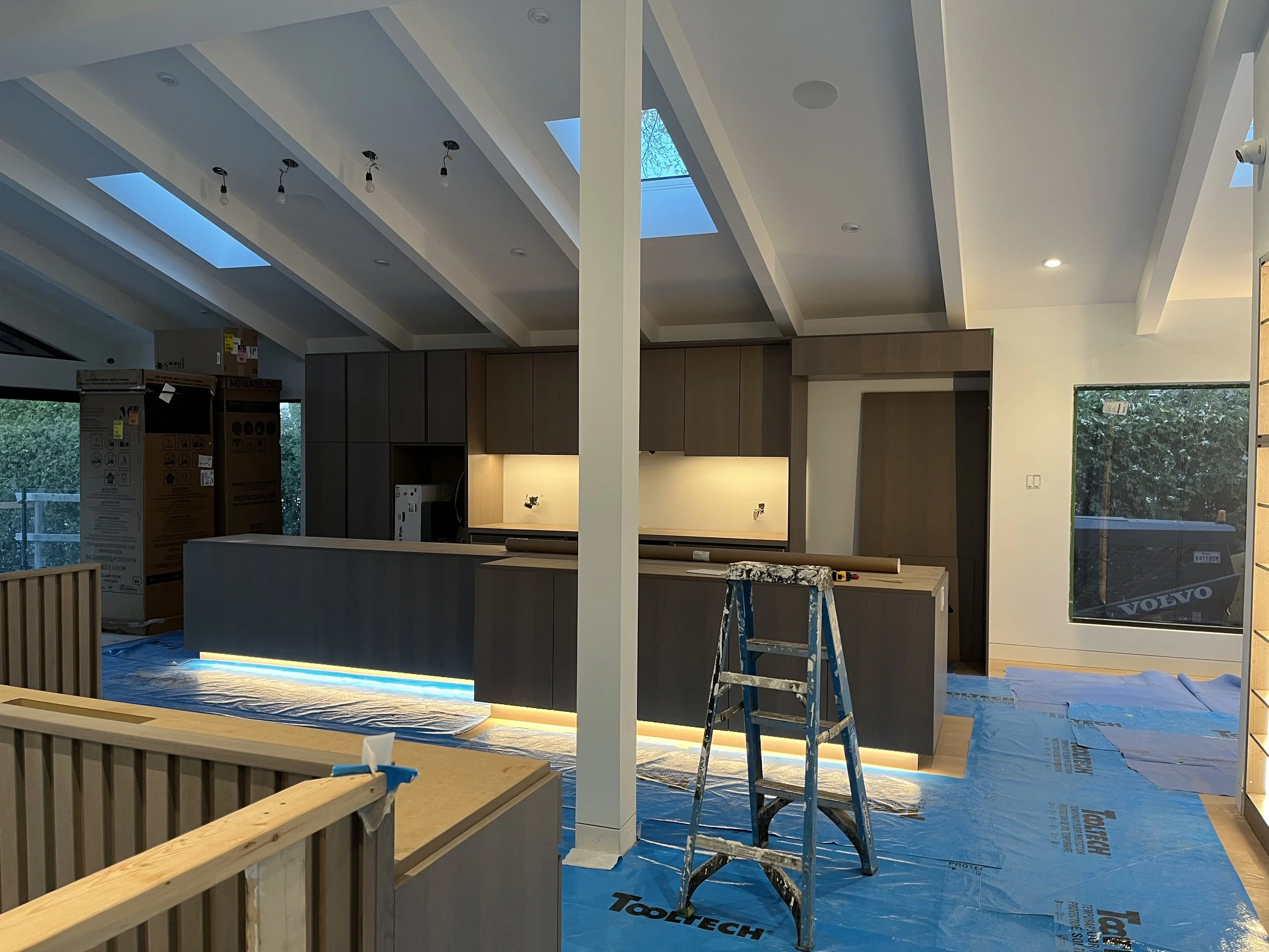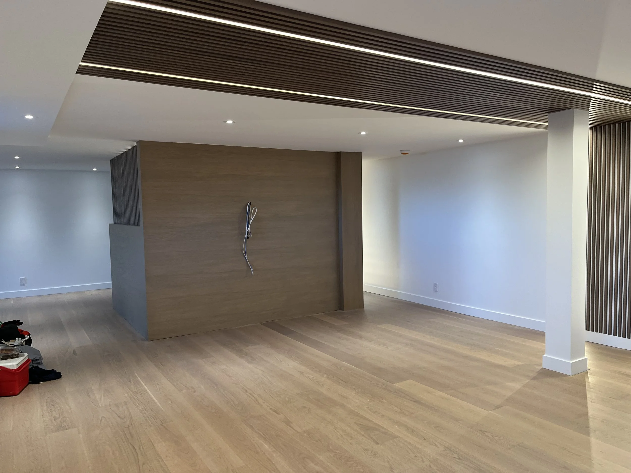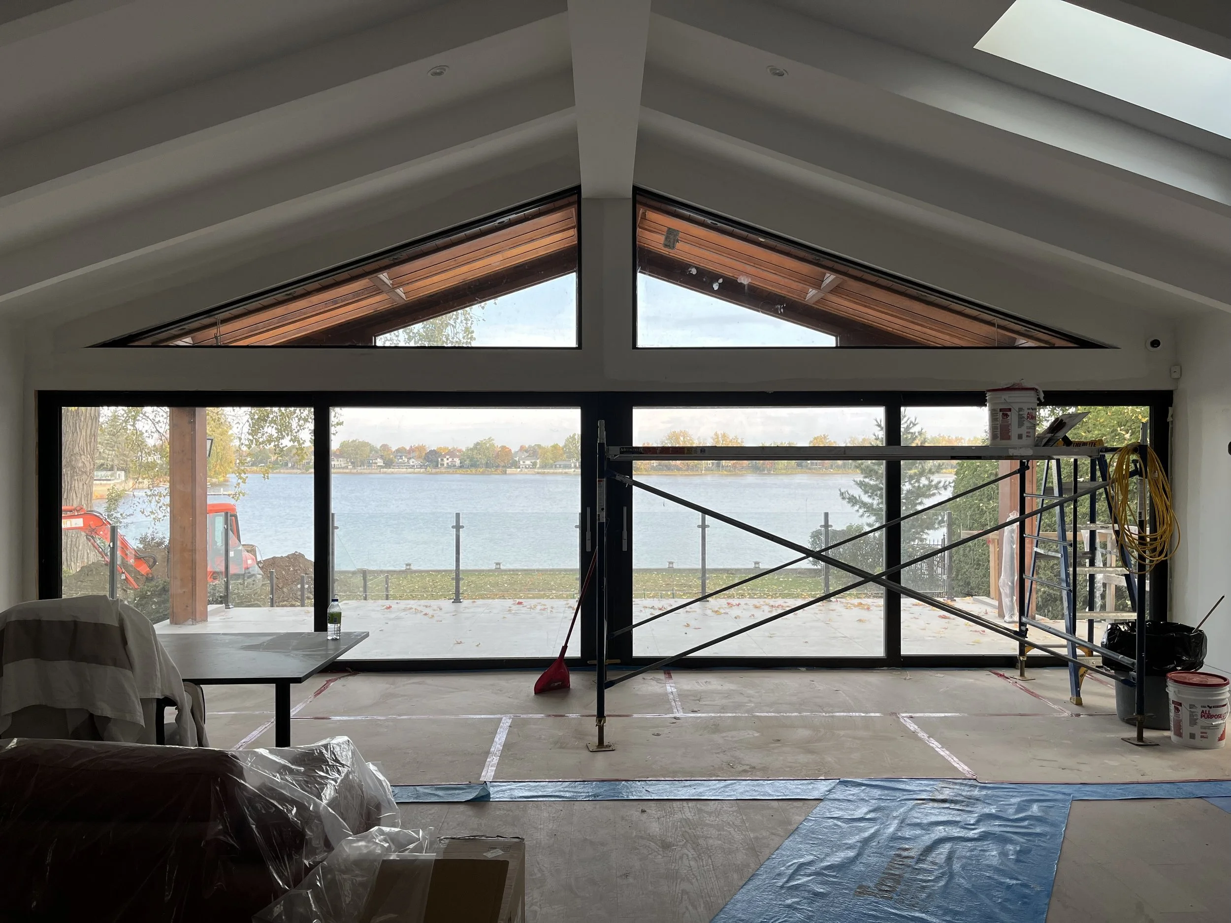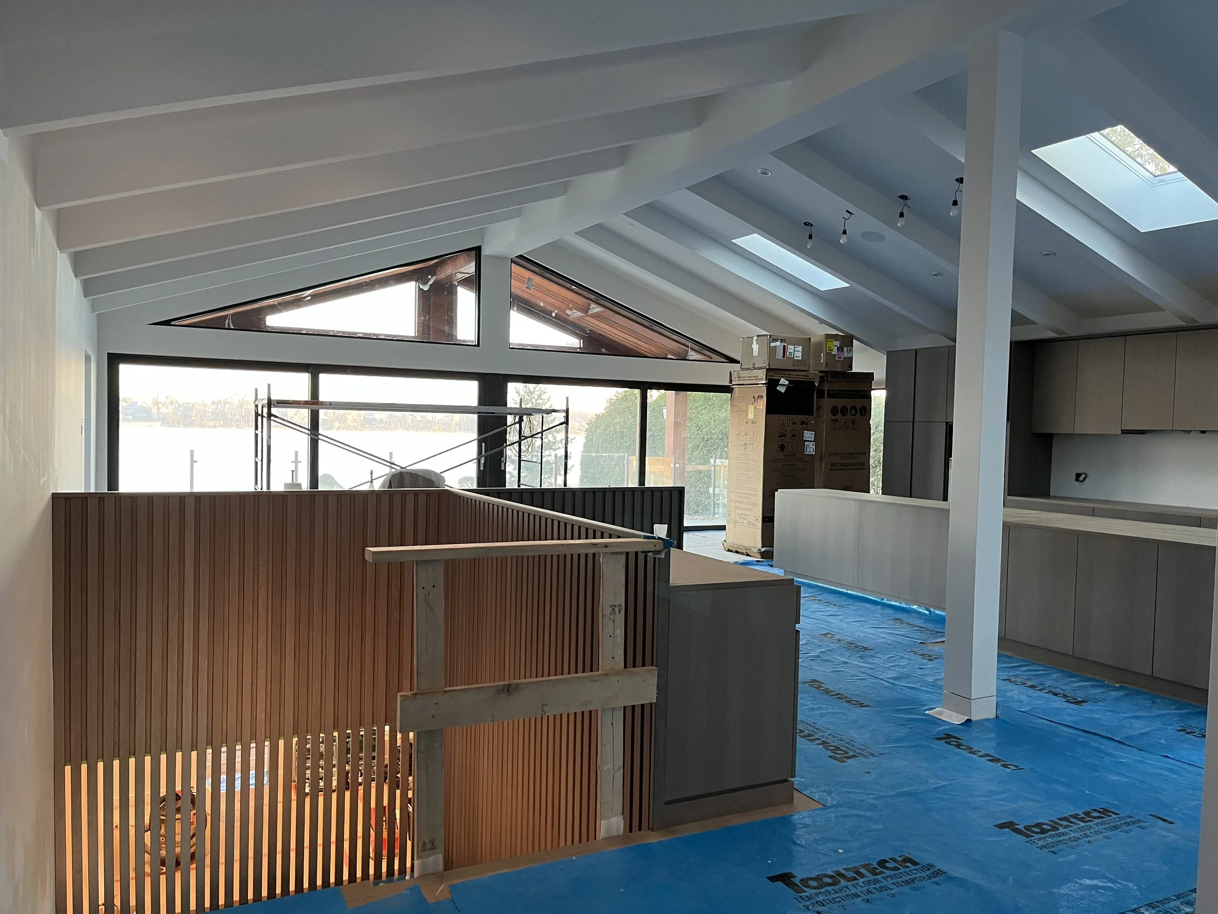 Projet rue saraguay Rénovation complète à pierrefonds d’une maison de 4000 pi.ca. de style californienne avec des finitions architecturales très épurées, de l’éclairage intégré en abondance et une vue spectaculaire sur la rivière des prairies.