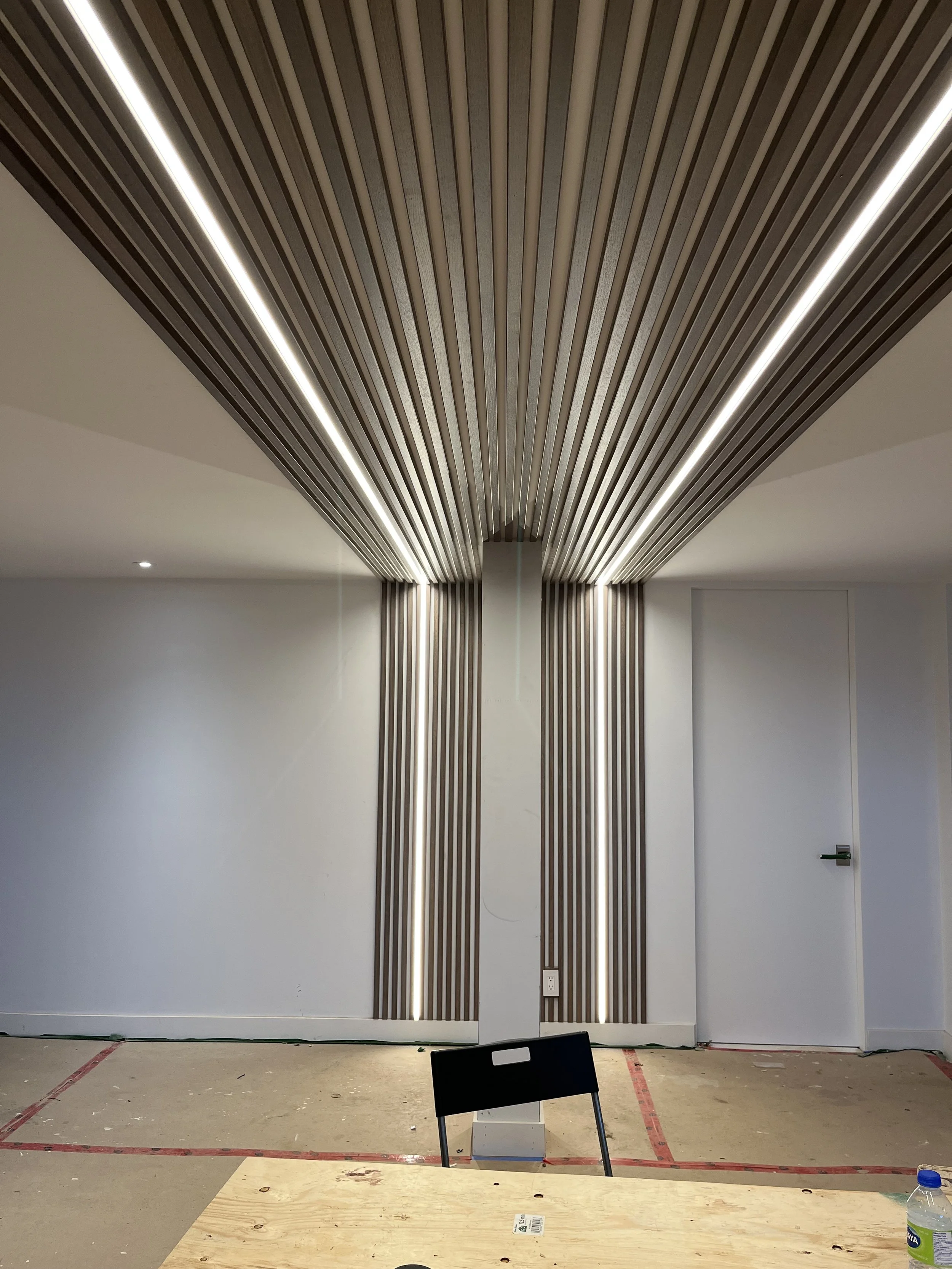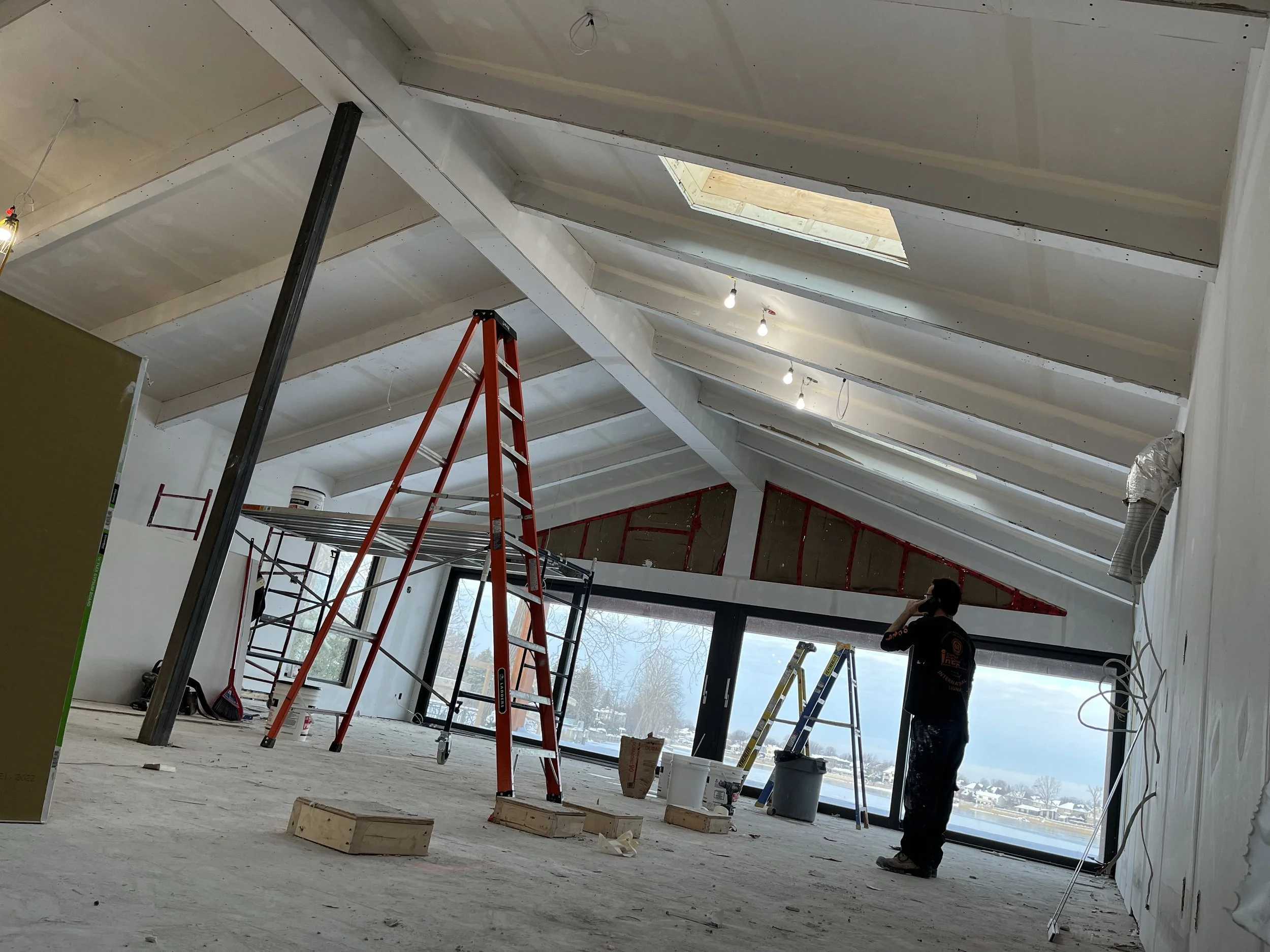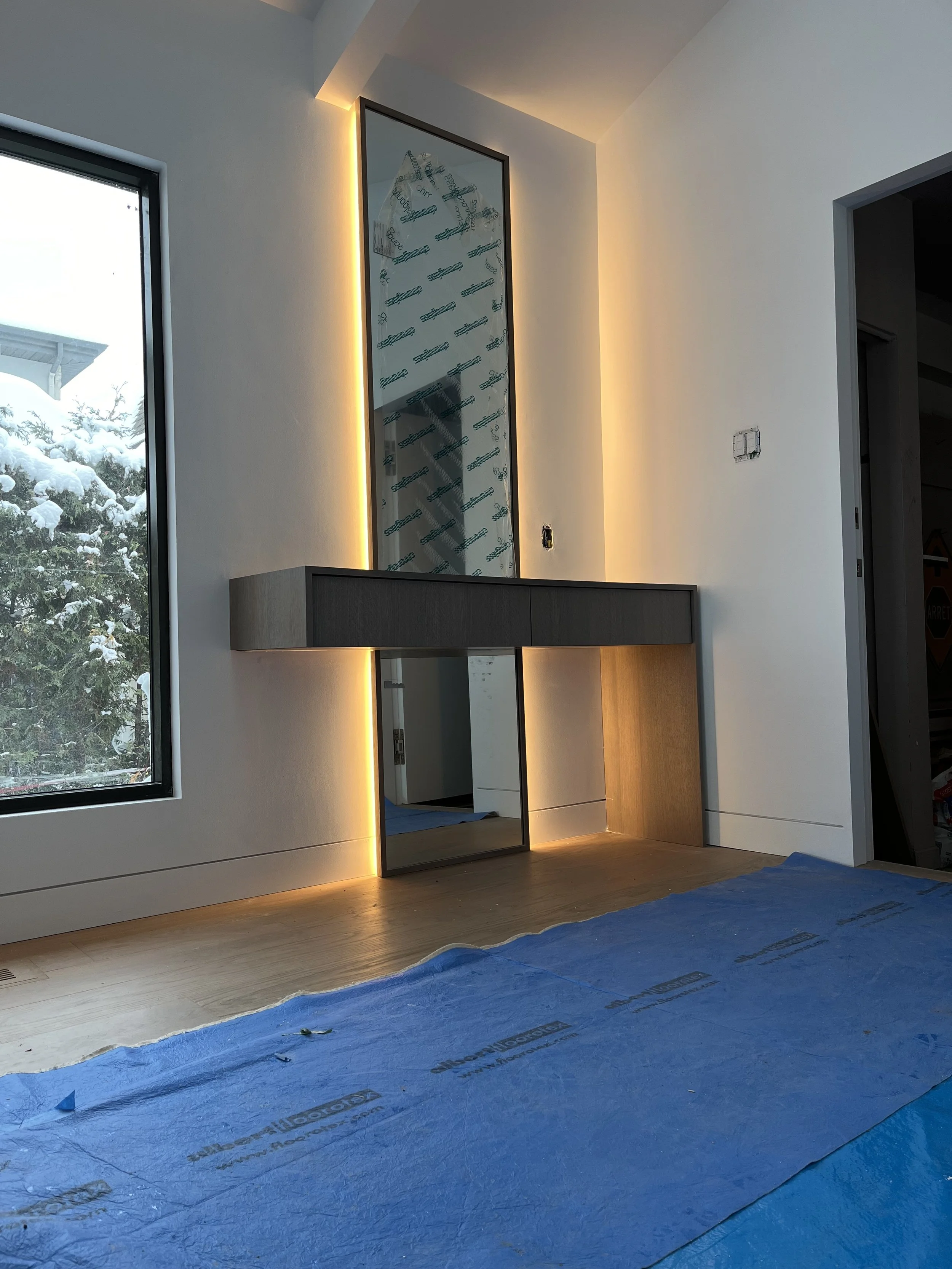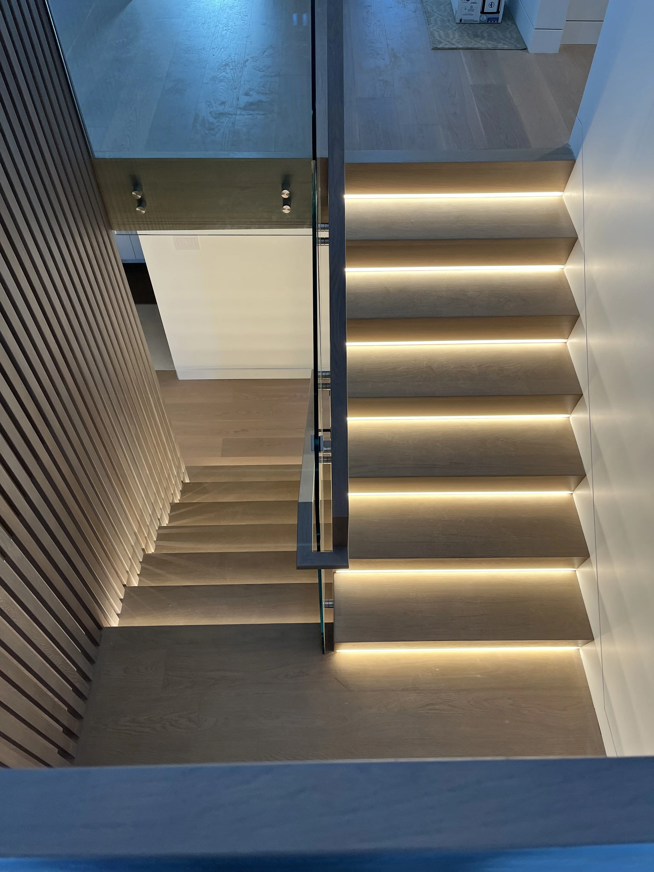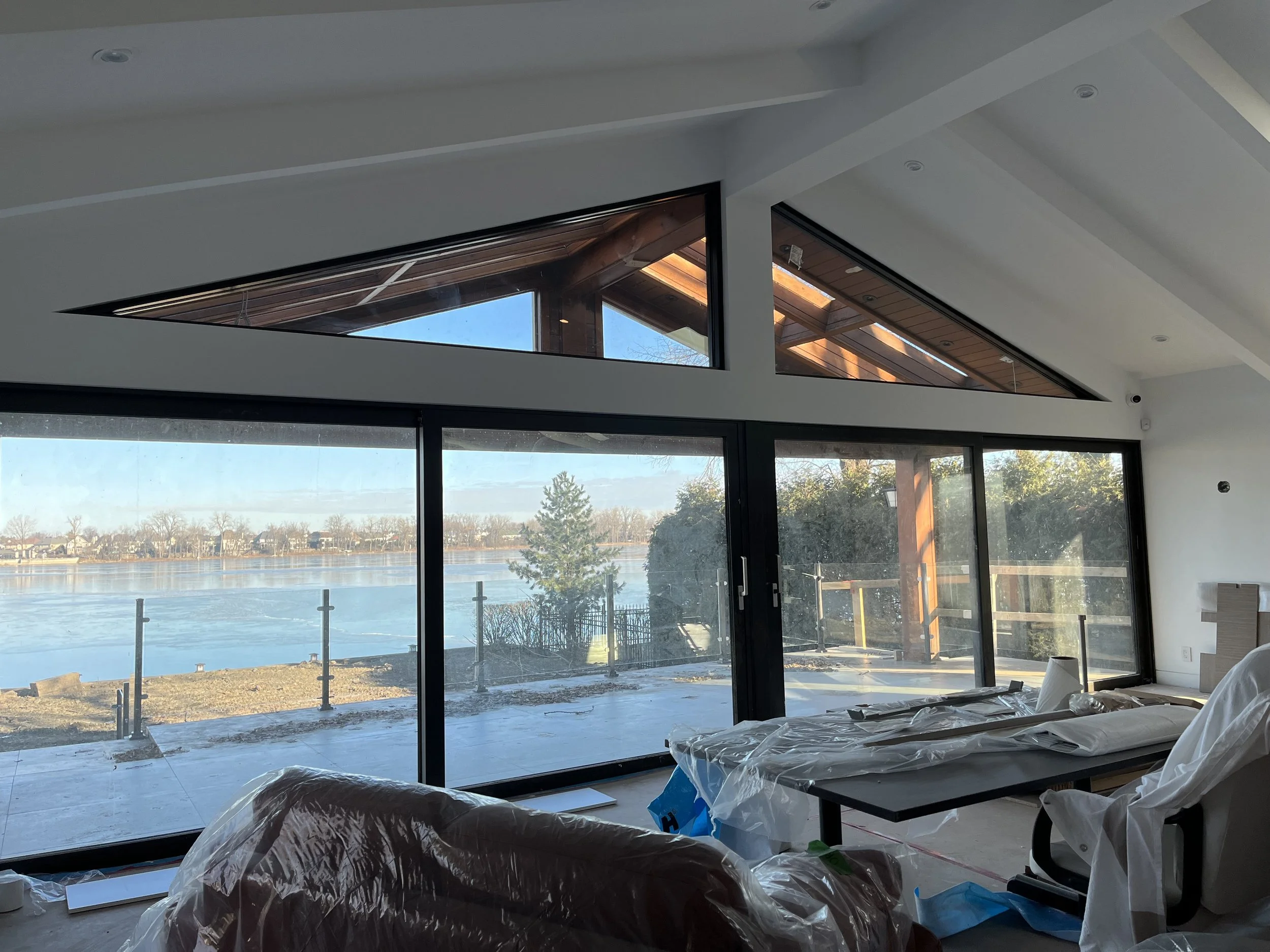 Projet rue saraguay Rénovation complète à pierrefonds d’une maison de 4000 pi.ca. de style californienne avec des finitions architecturales très épurées, de l’éclairage intégré en abondance et une vue spectaculaire sur la rivière des prairies.