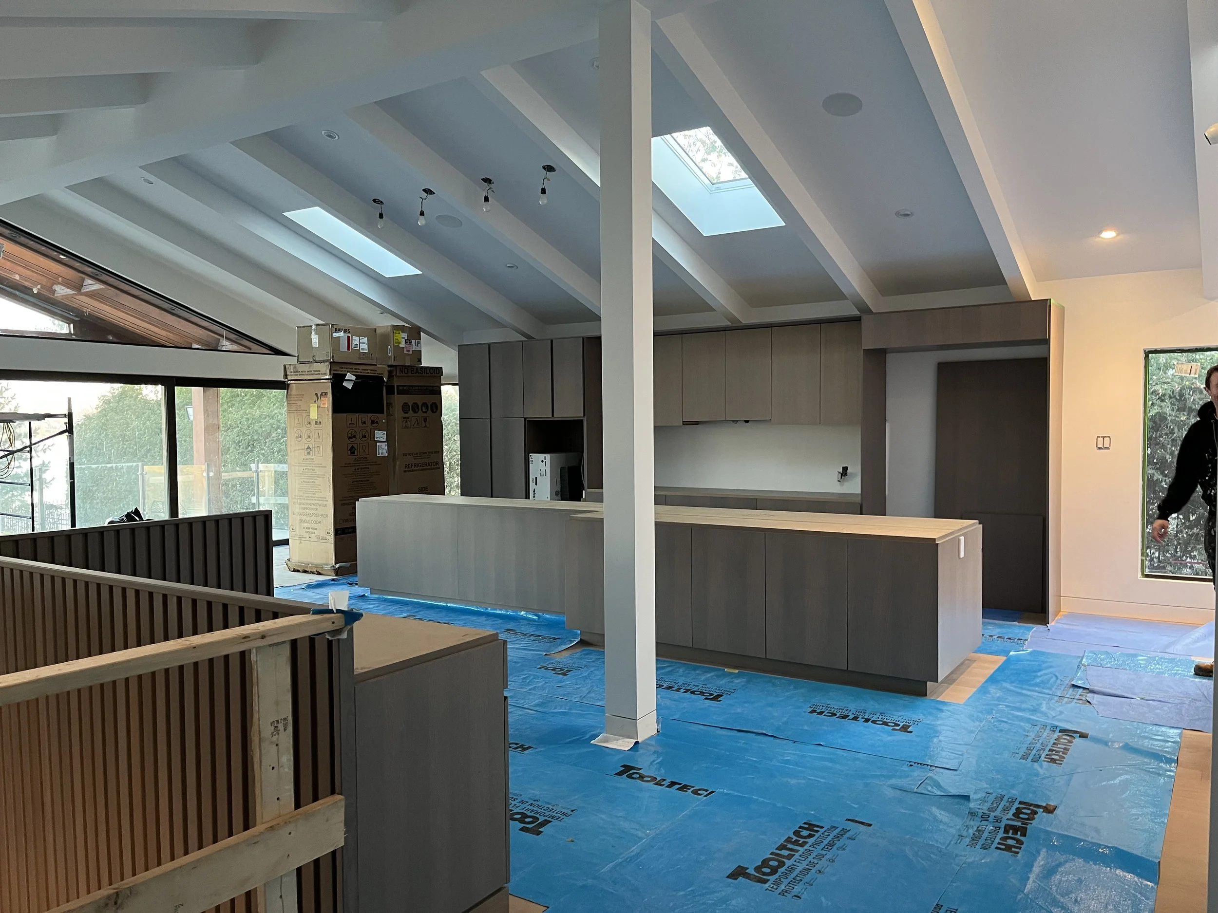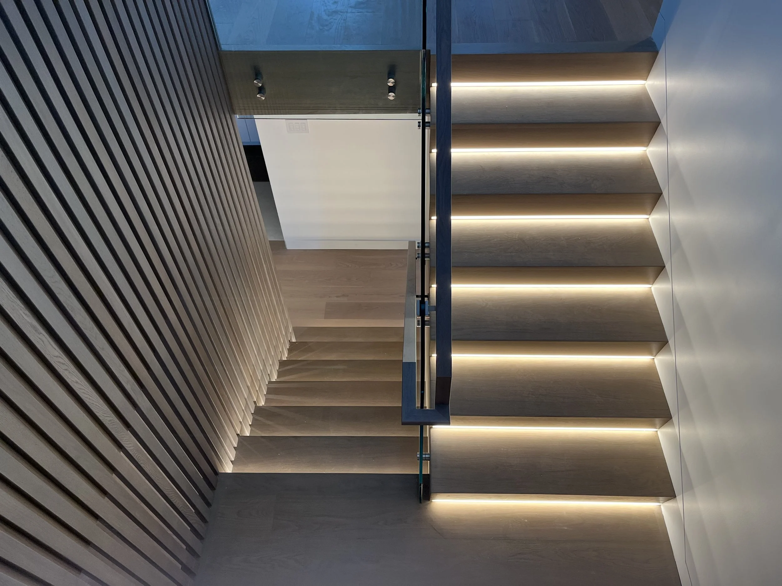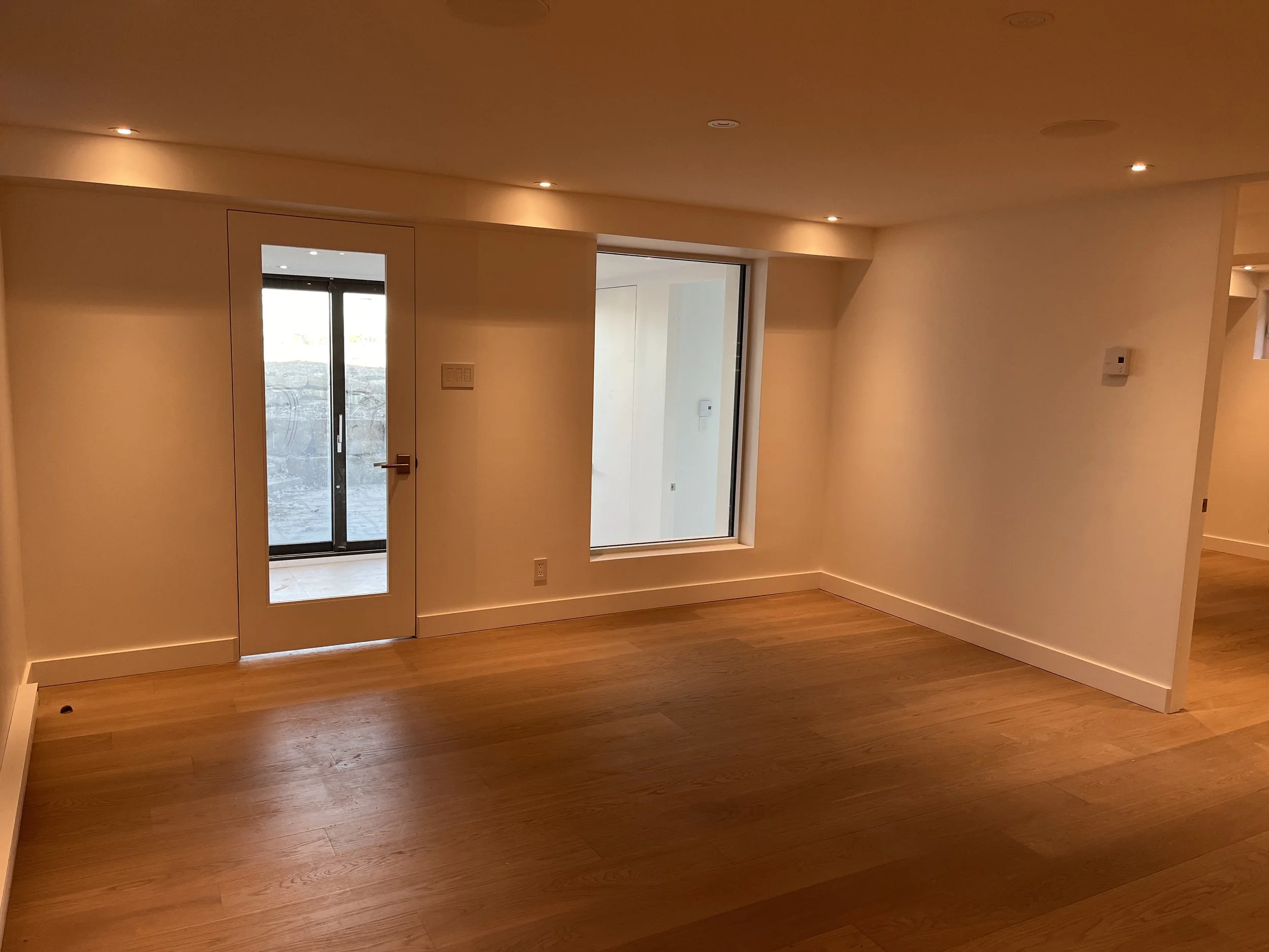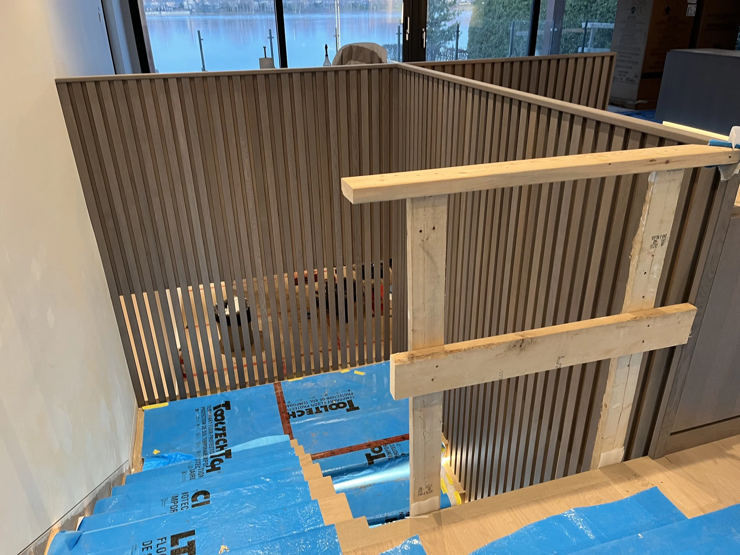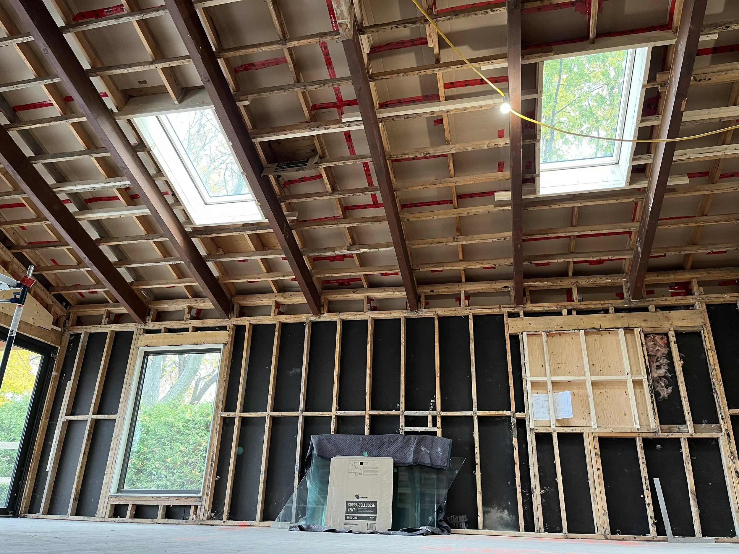 Projet rue saraguay Rénovation complète à pierrefonds d’une maison de 4000 pi.ca. de style californienne avec des finitions architecturales très épurées, de l’éclairage intégré en abondance et une vue spectaculaire sur la rivière des prairies.