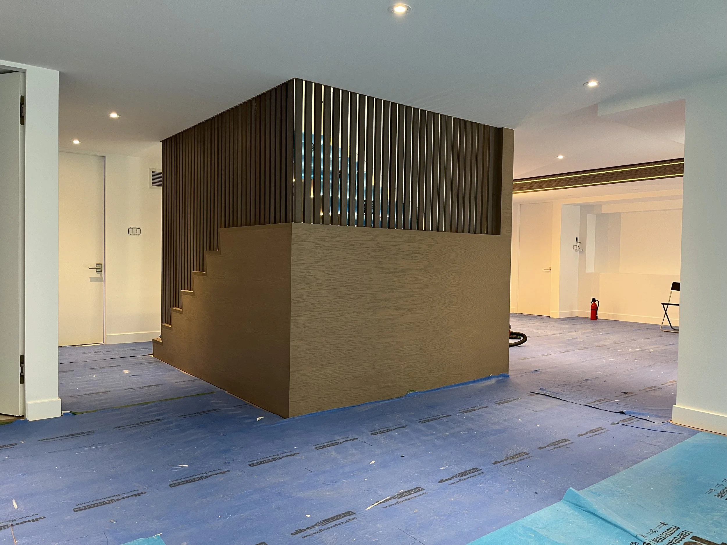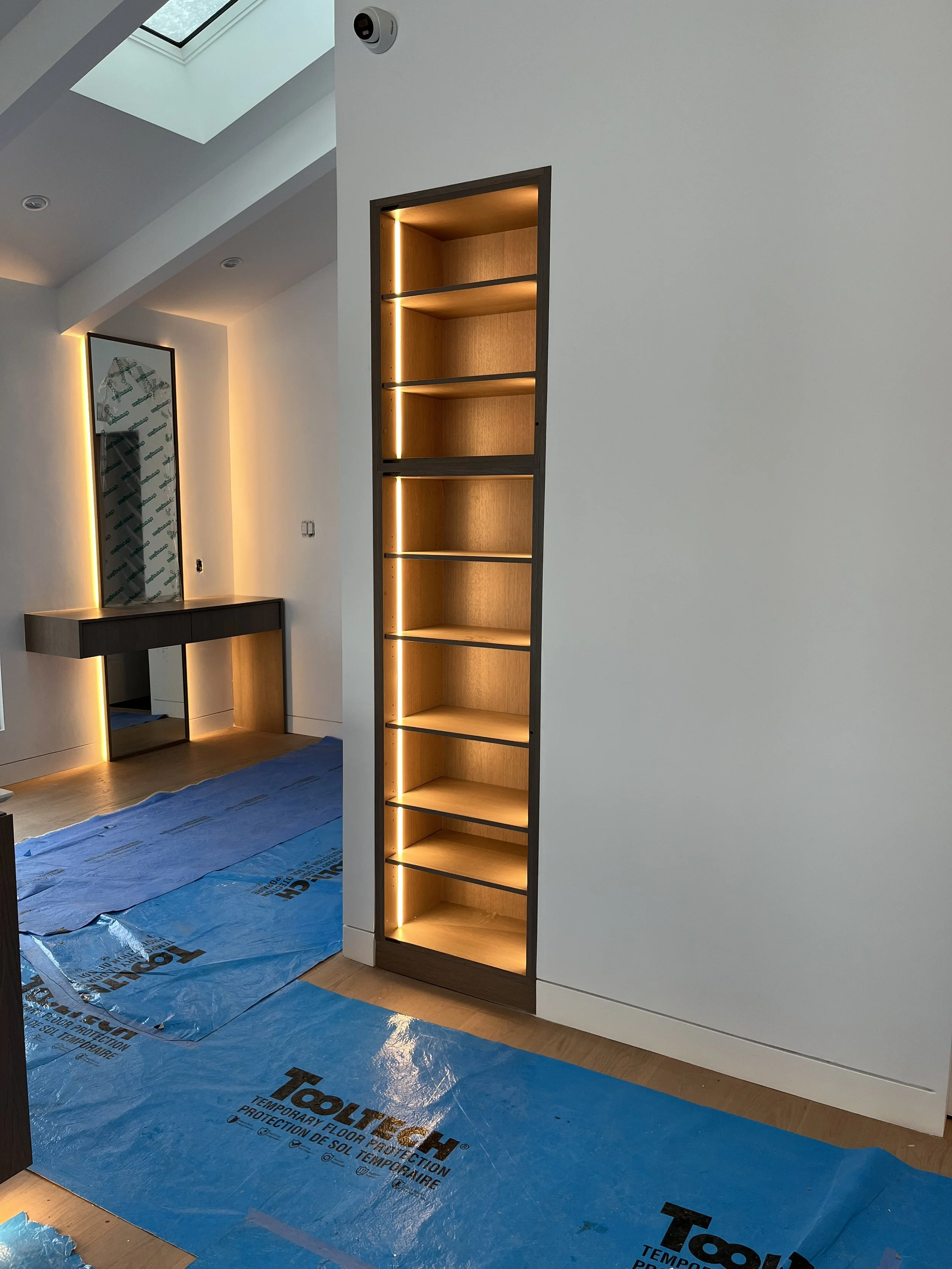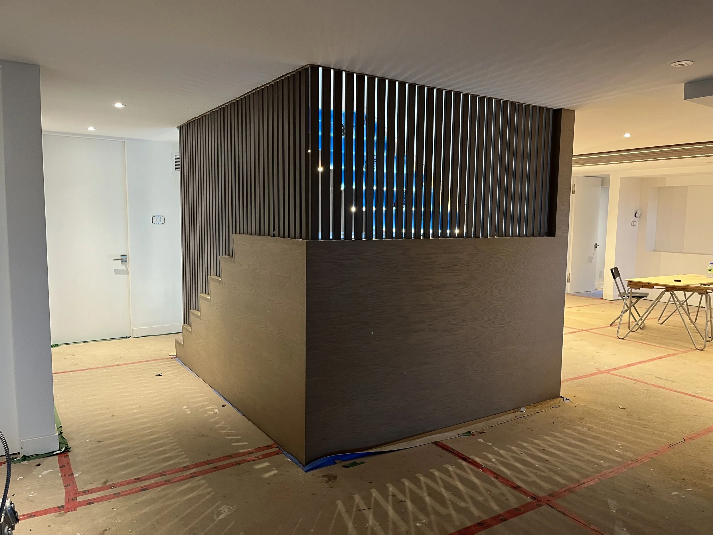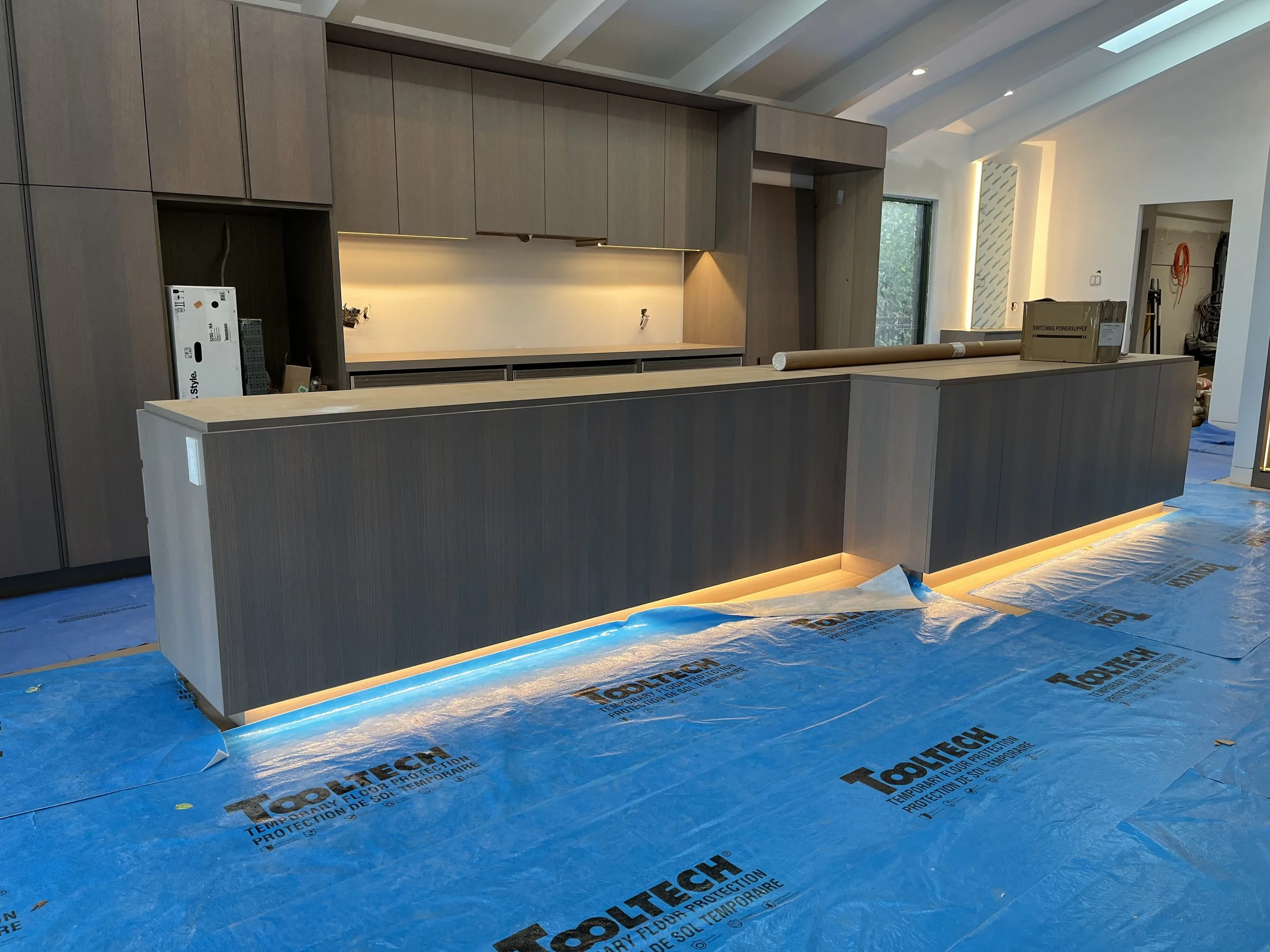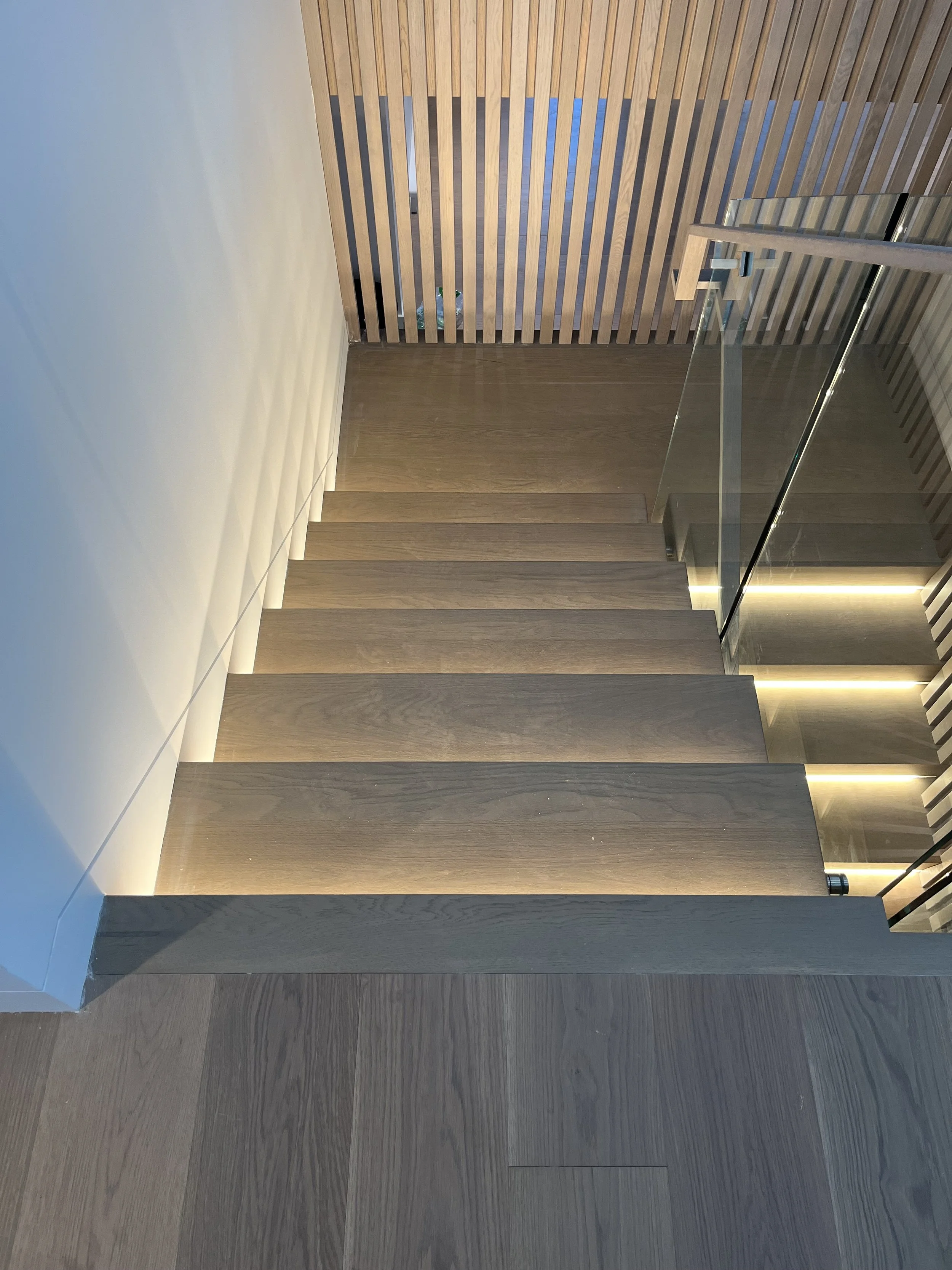 Projet rue saraguay Rénovation complète à pierrefonds d’une maison de 4000 pi.ca. de style californienne avec des finitions architecturales très épurées, de l’éclairage intégré en abondance et une vue spectaculaire sur la rivière des prairies.