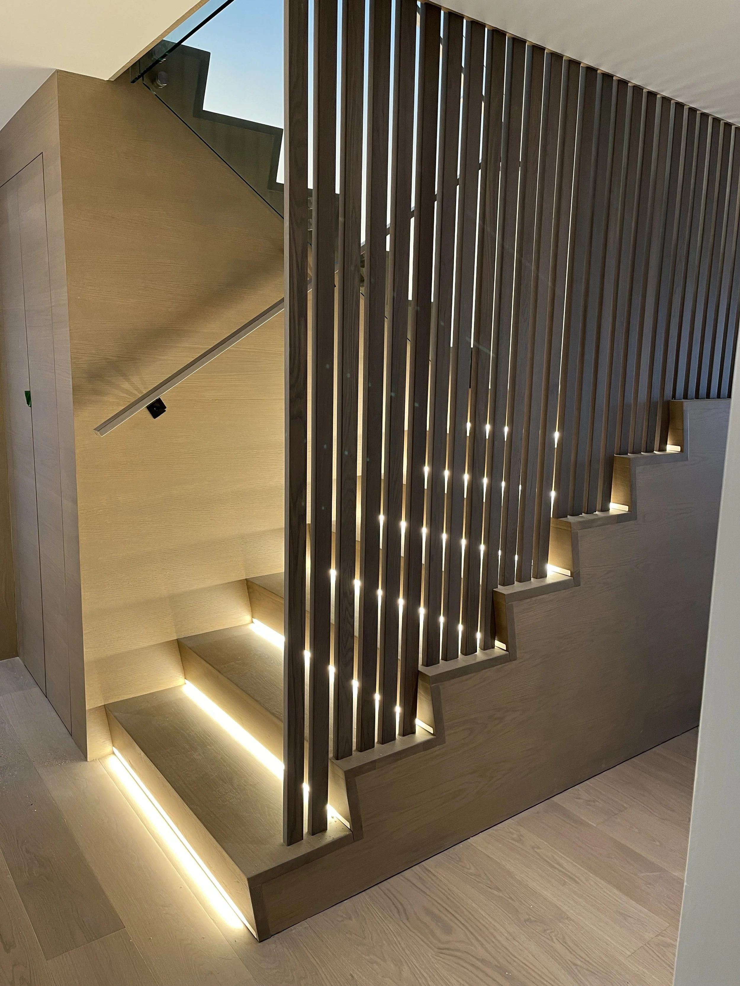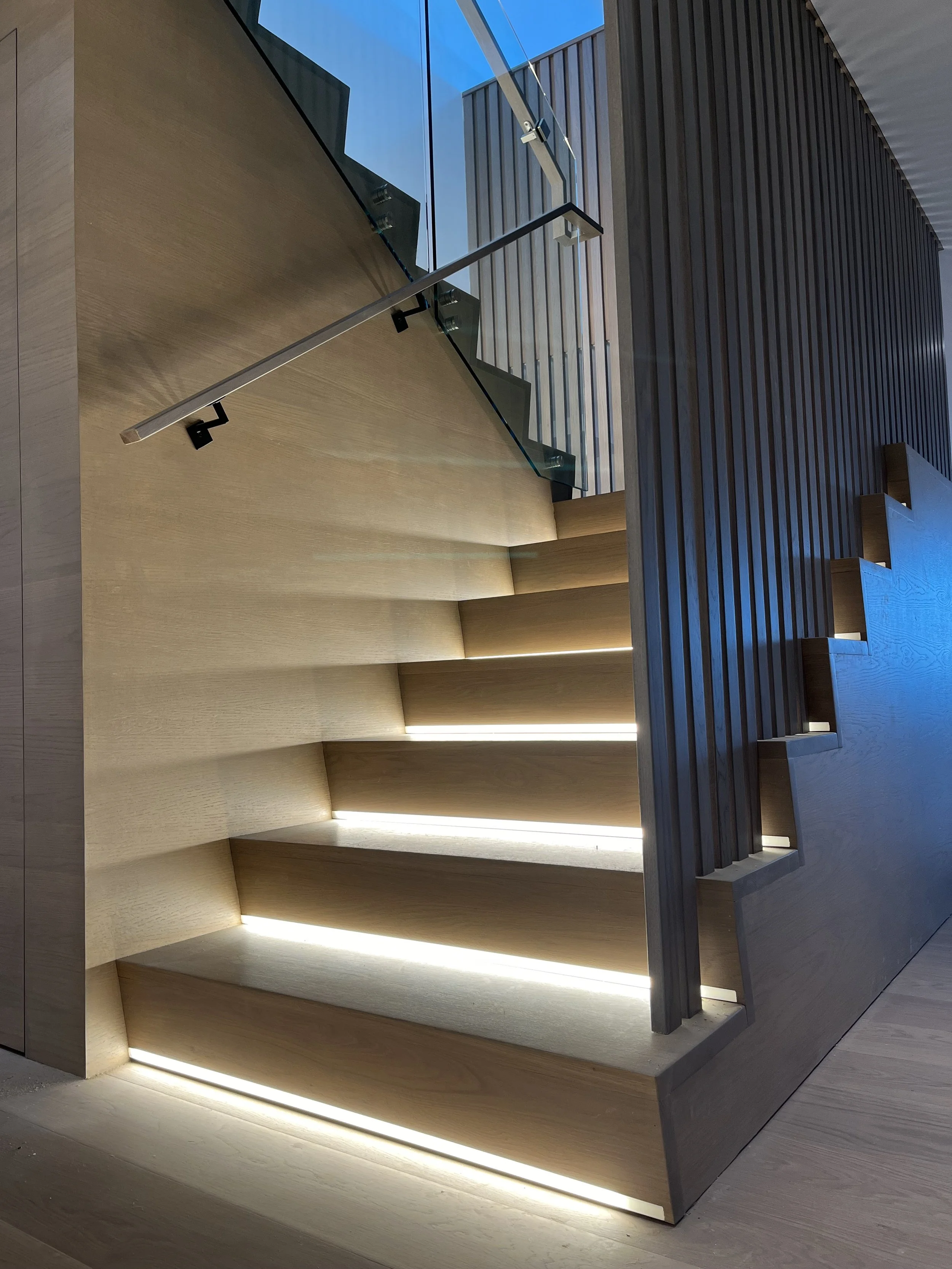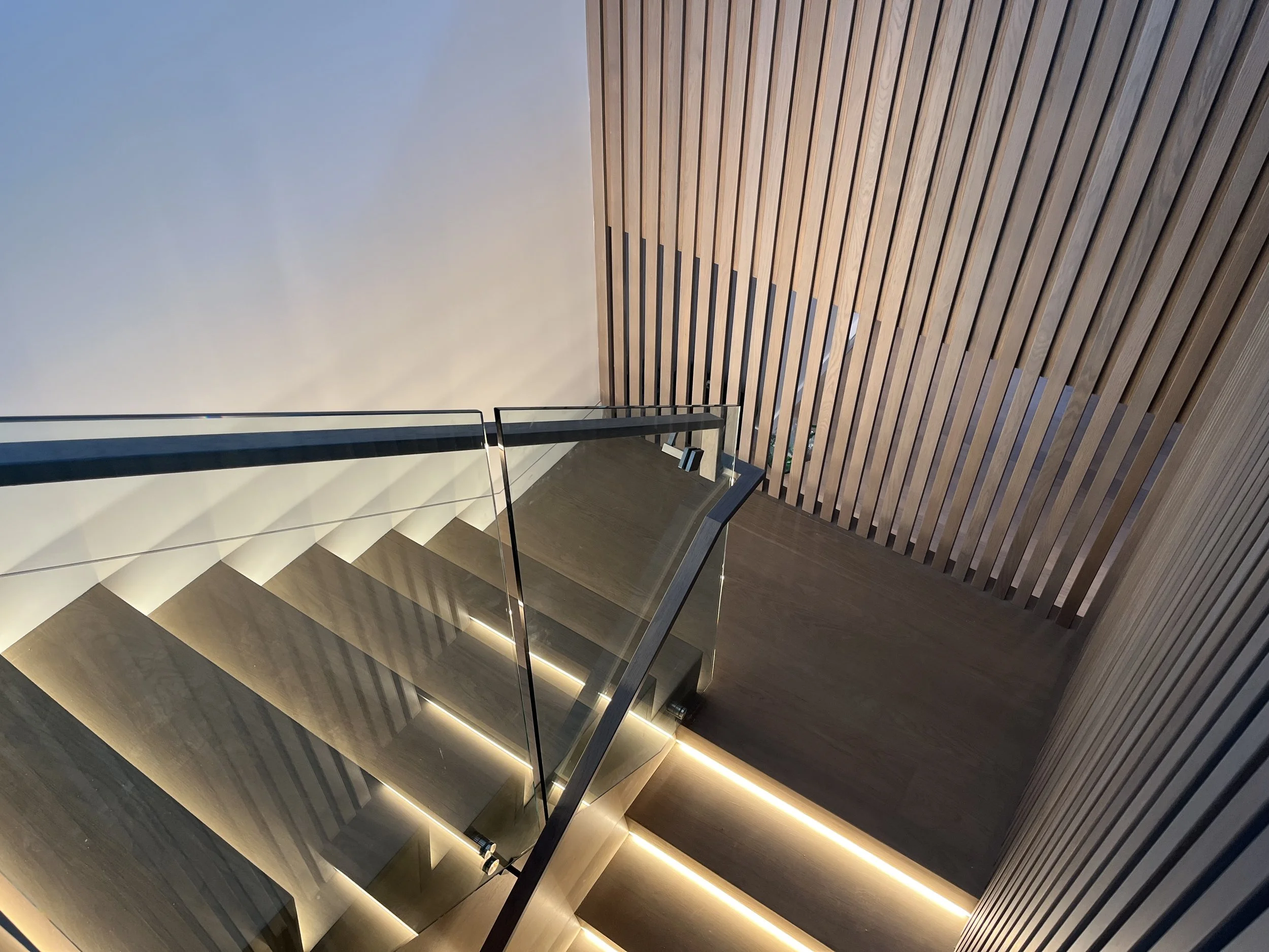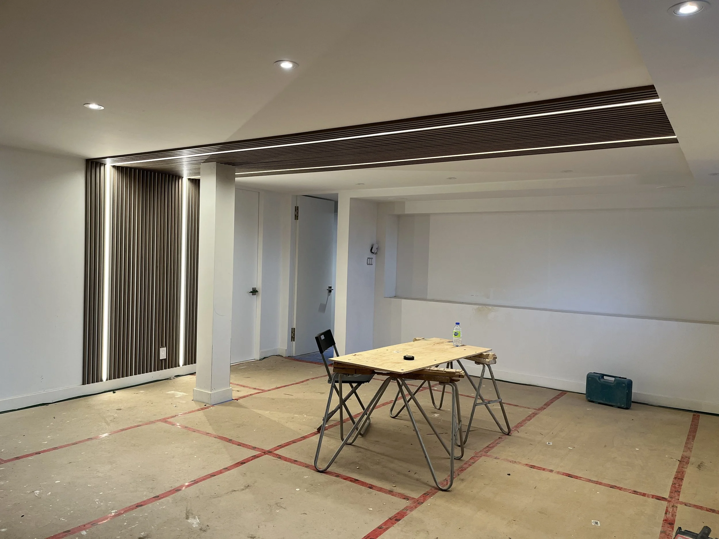 Projet rue saraguay Rénovation complète à pierrefonds d’une maison de 4000 pi.ca. de style californienne avec des finitions architecturales très épurées, de l’éclairage intégré en abondance et une vue spectaculaire sur la rivière des prairies.