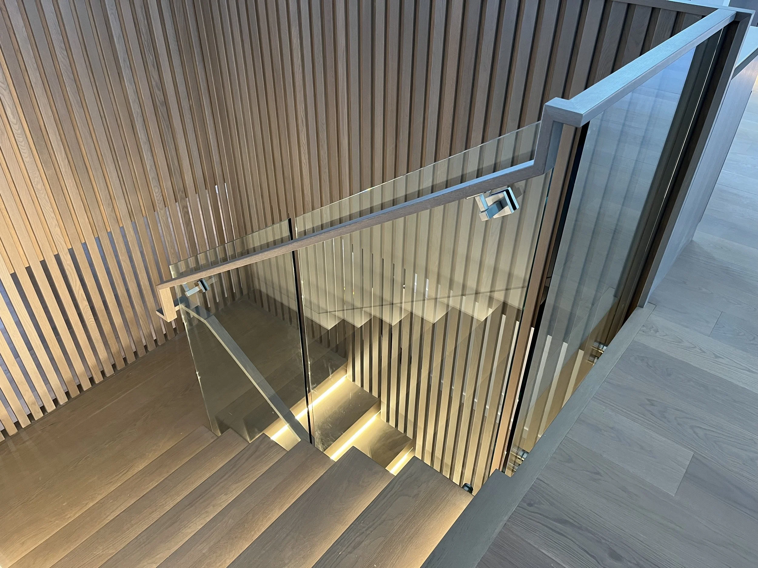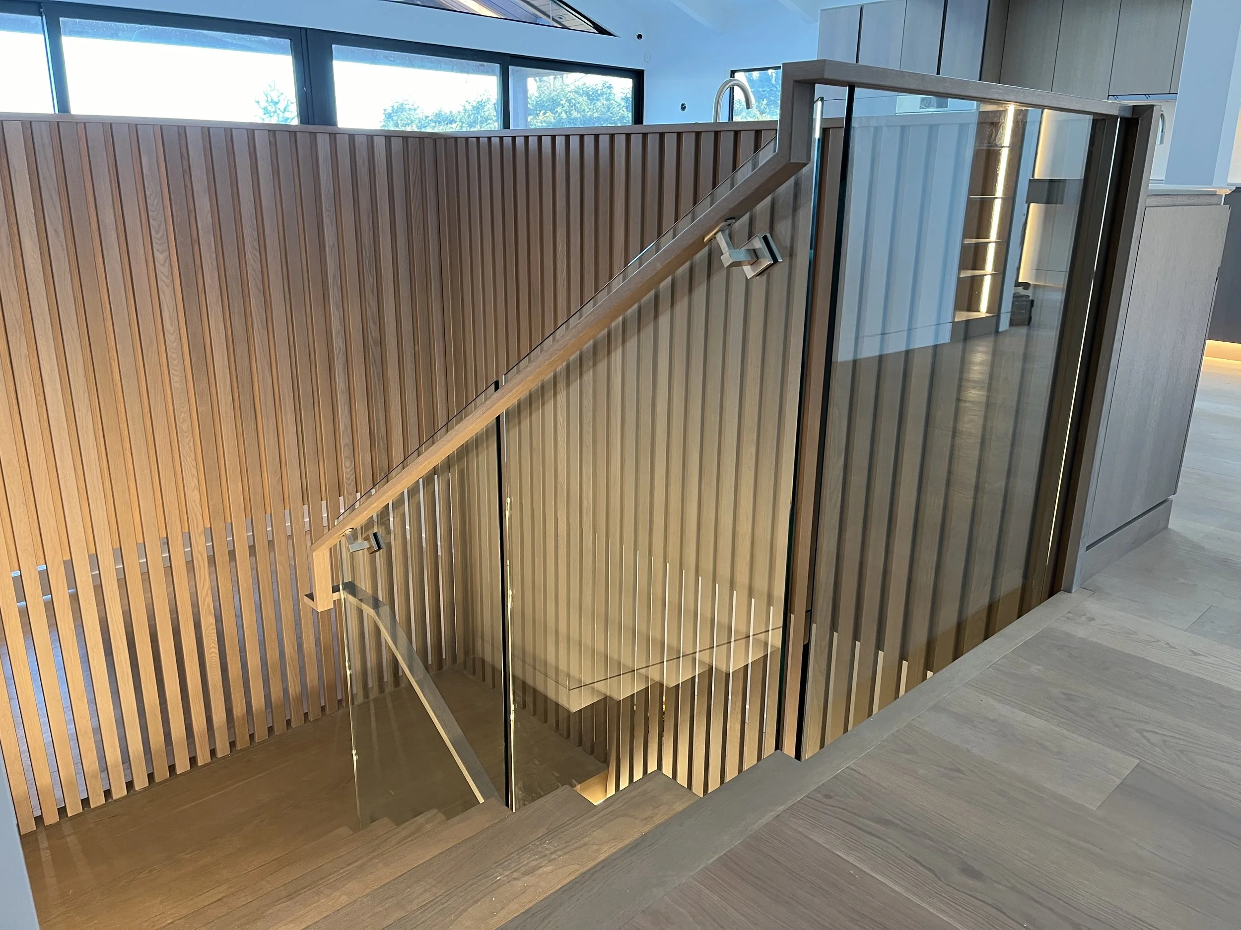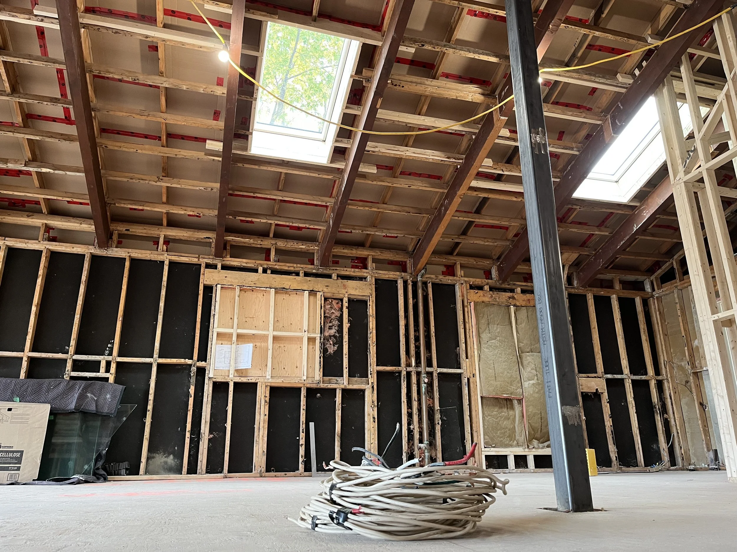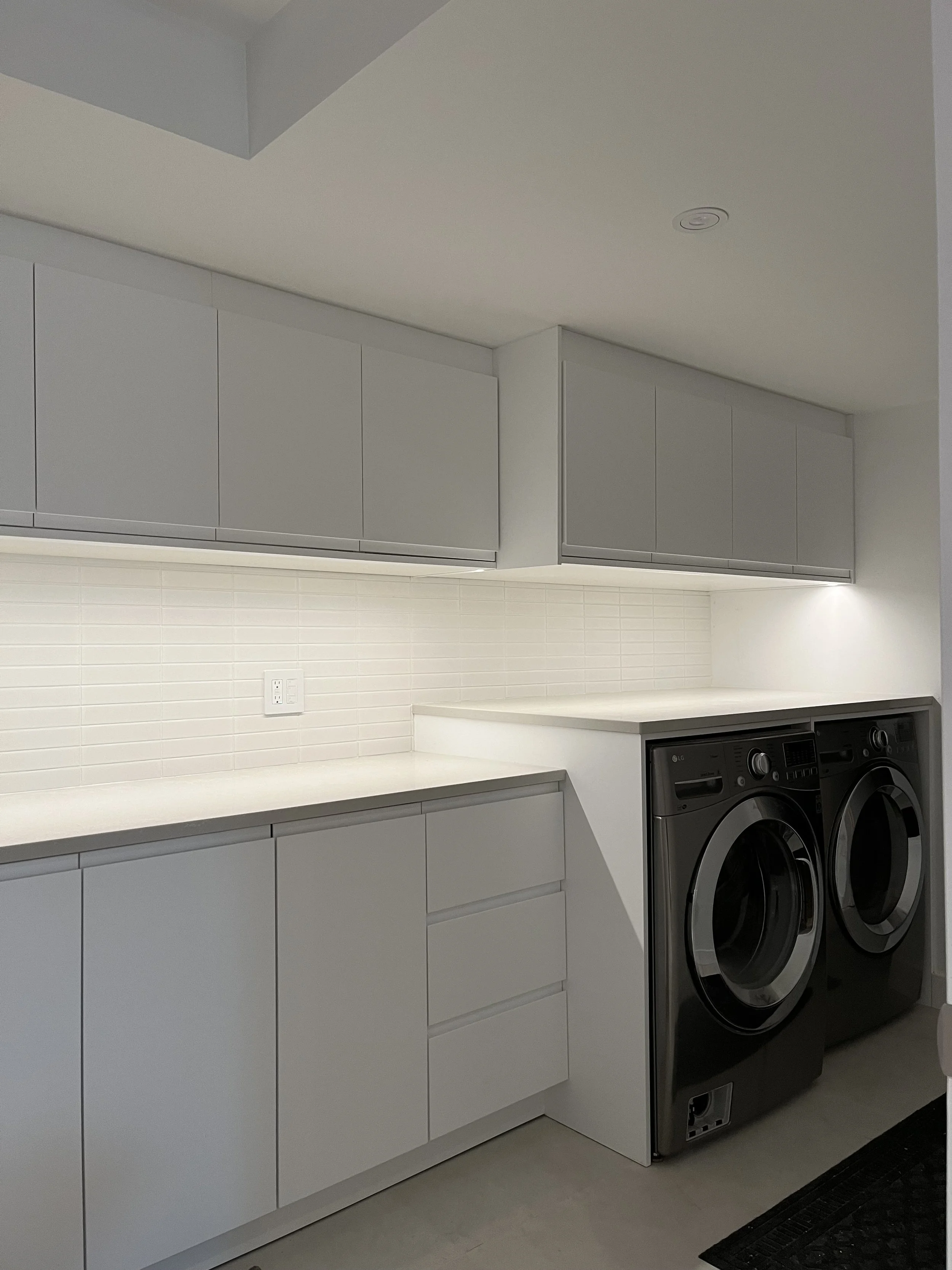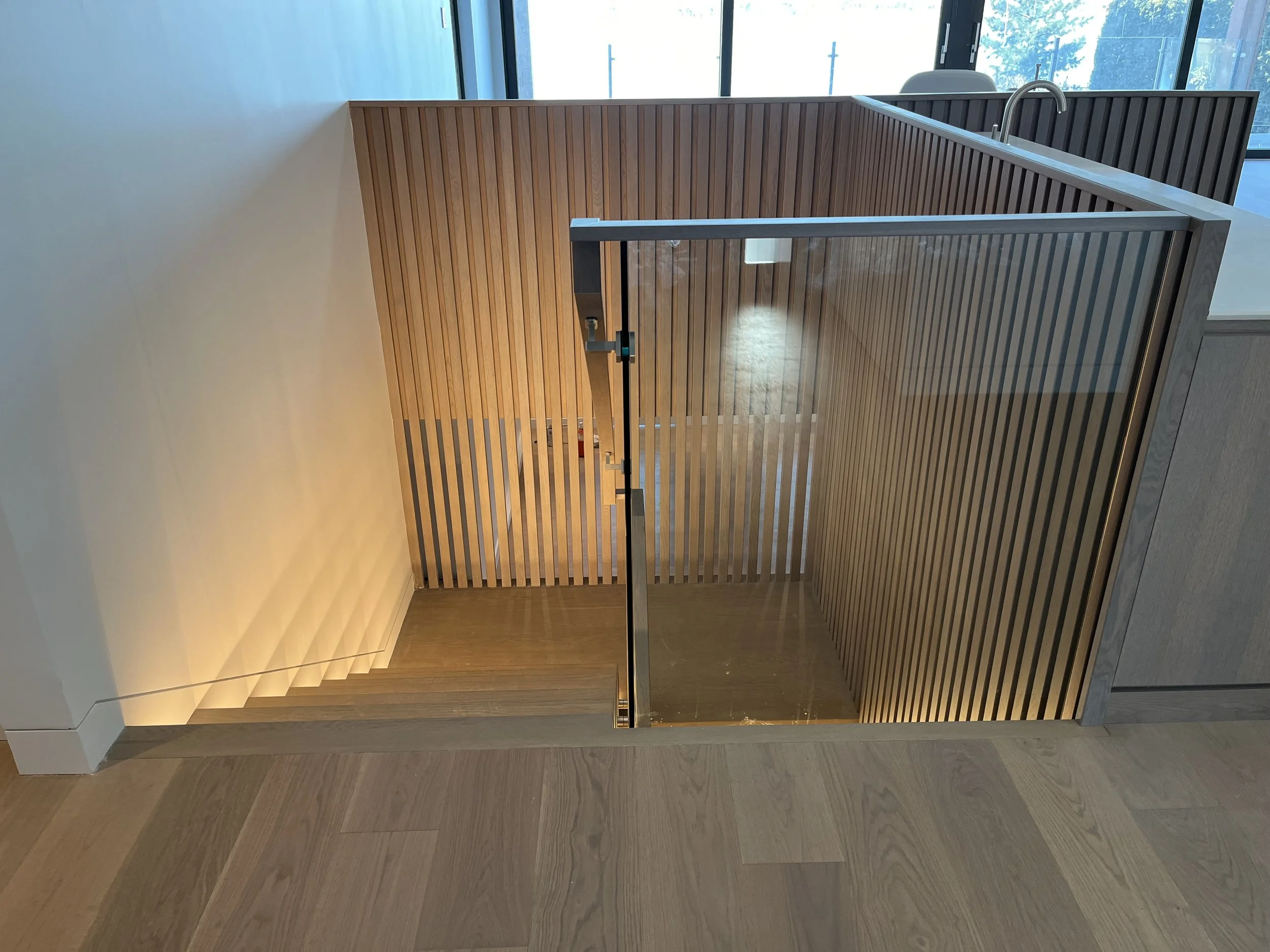 Projet rue saraguay Rénovation complète à pierrefonds d’une maison de 4000 pi.ca. de style californienne avec des finitions architecturales très épurées, de l’éclairage intégré en abondance et une vue spectaculaire sur la rivière des prairies.