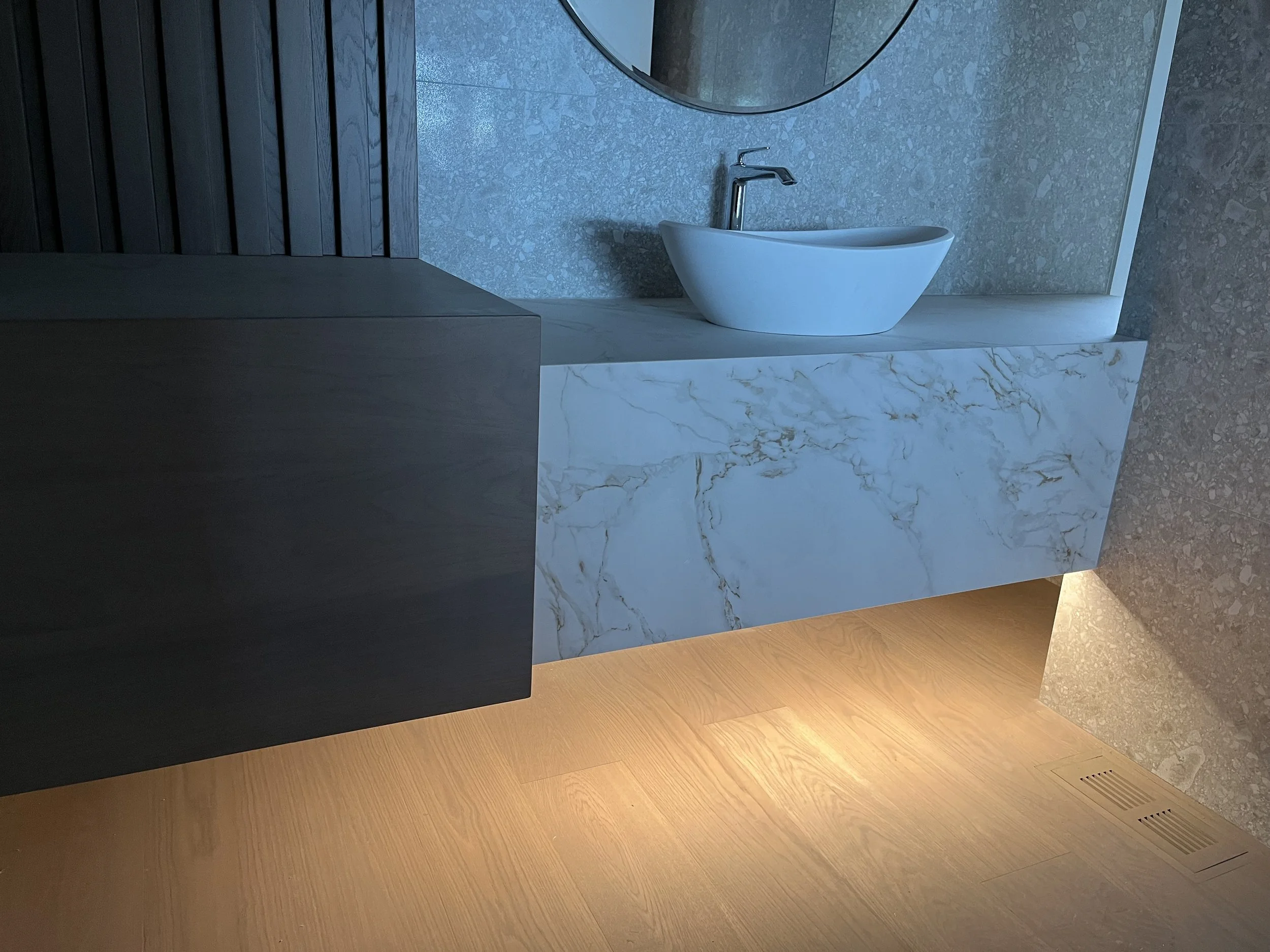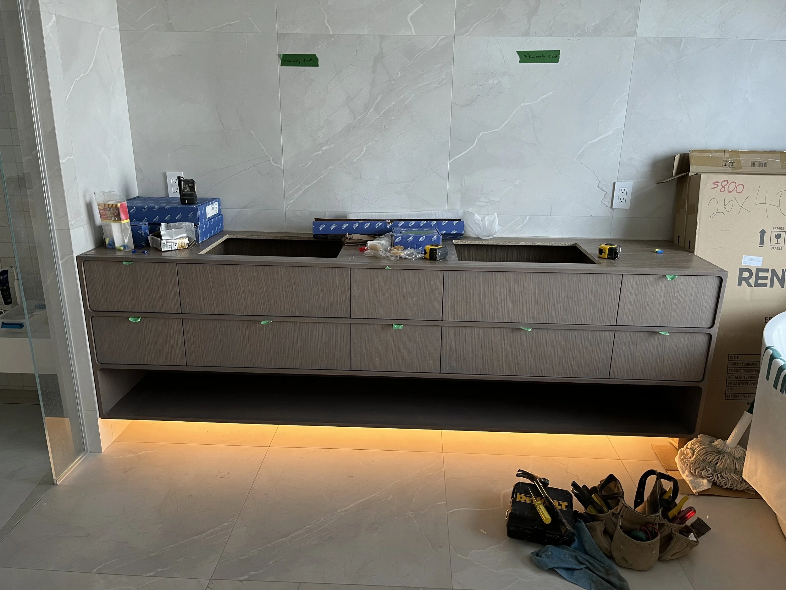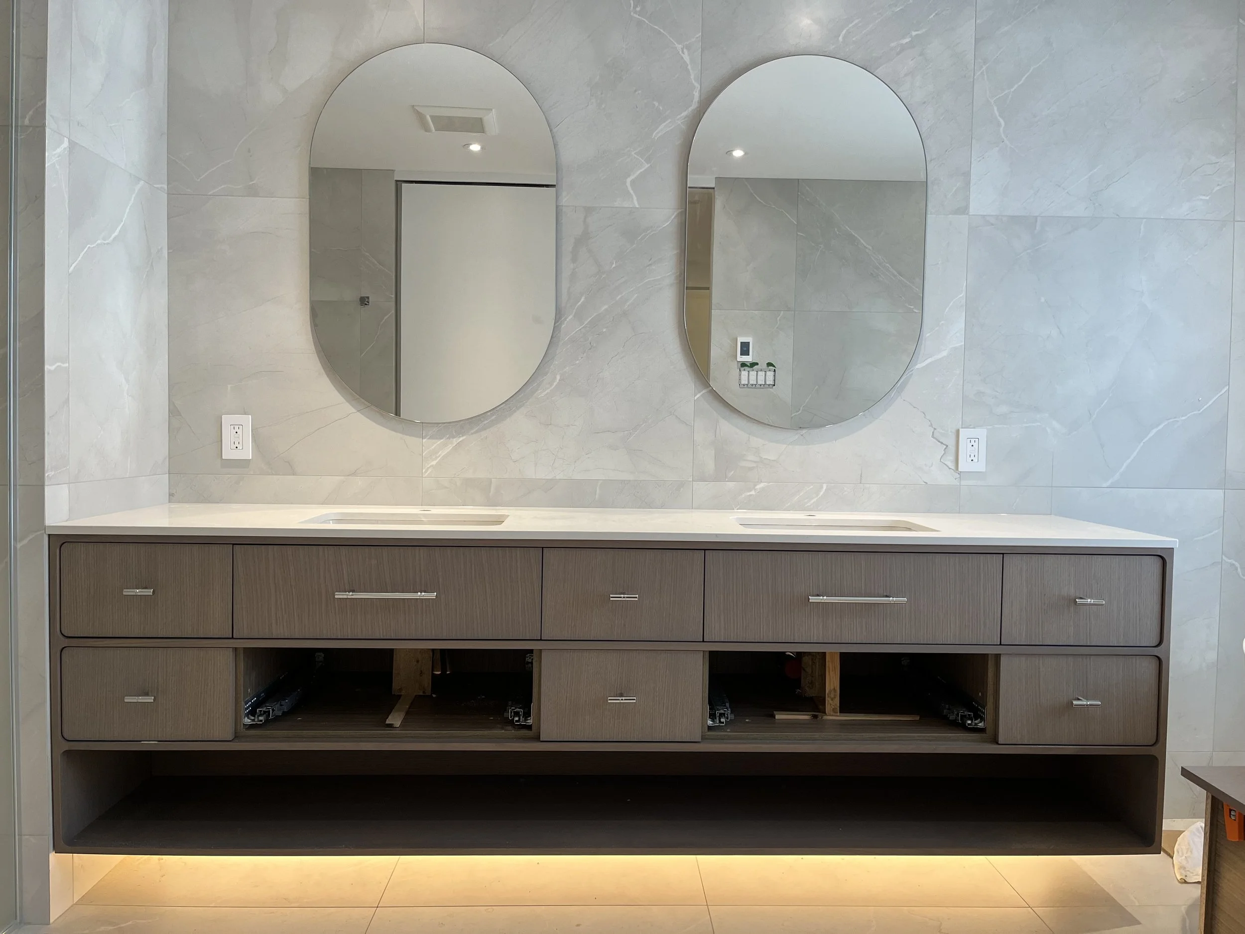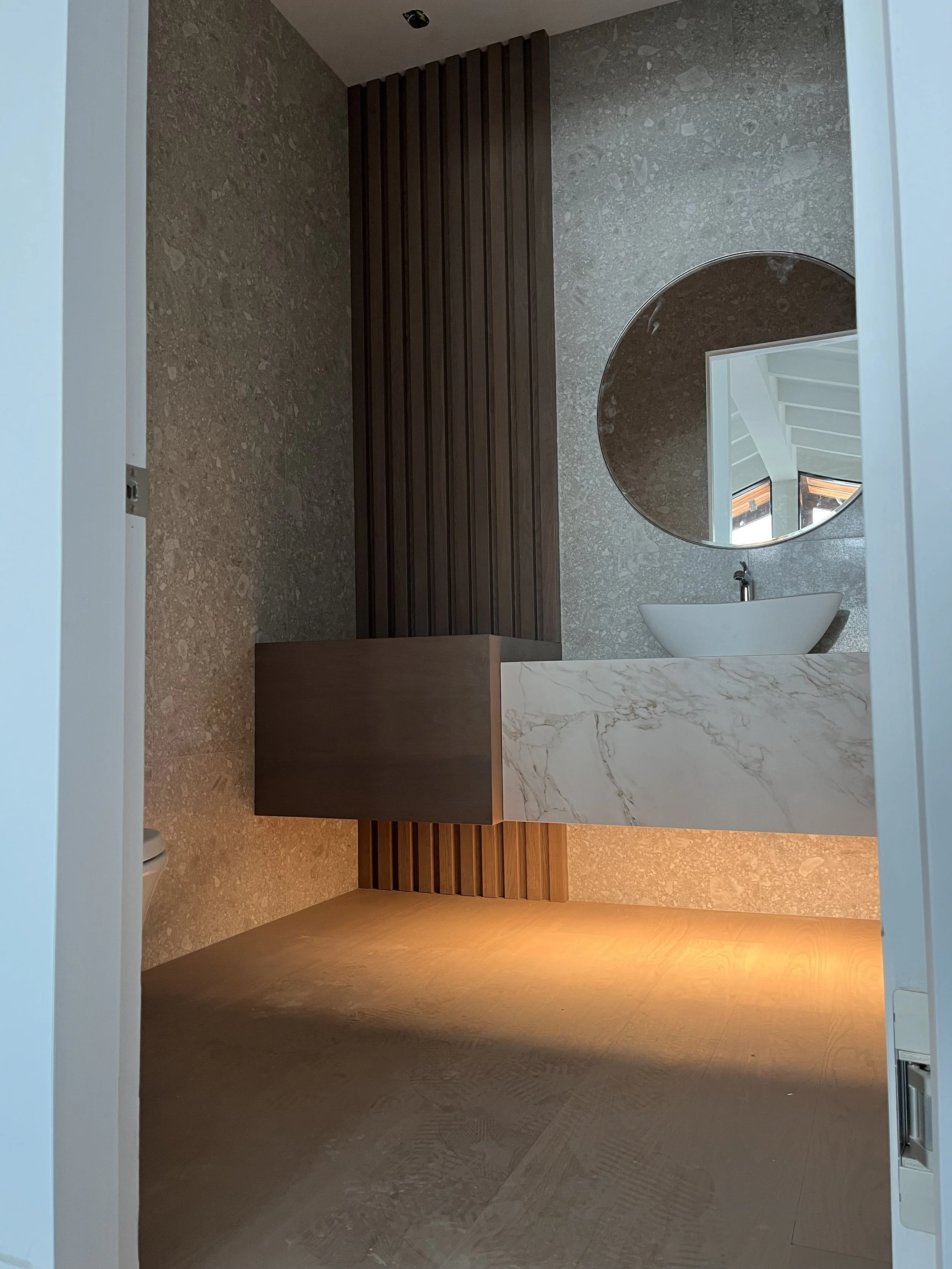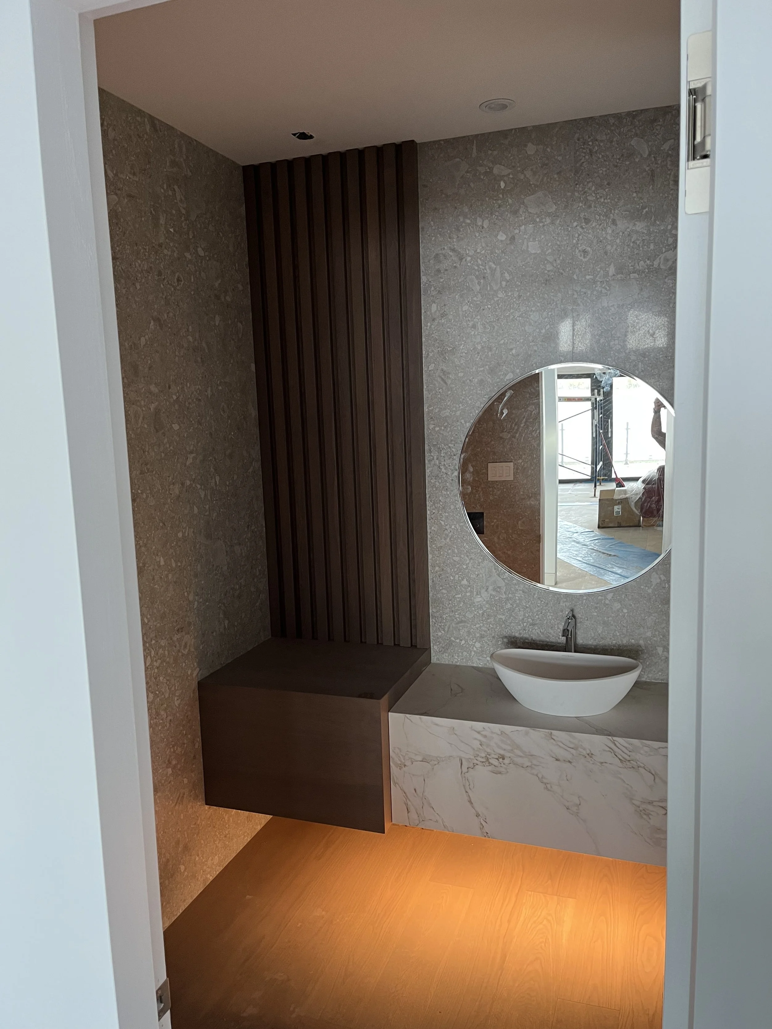 Projet rue saraguay Rénovation complète à pierrefonds d’une maison de 4000 pi.ca. de style californienne avec des finitions architecturales très épurées, de l’éclairage intégré en abondance et une vue spectaculaire sur la rivière des prairies.